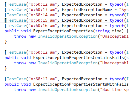 - ExpectedExceptionName specifies a the FullName of an exception that should be thrown by this invocation.